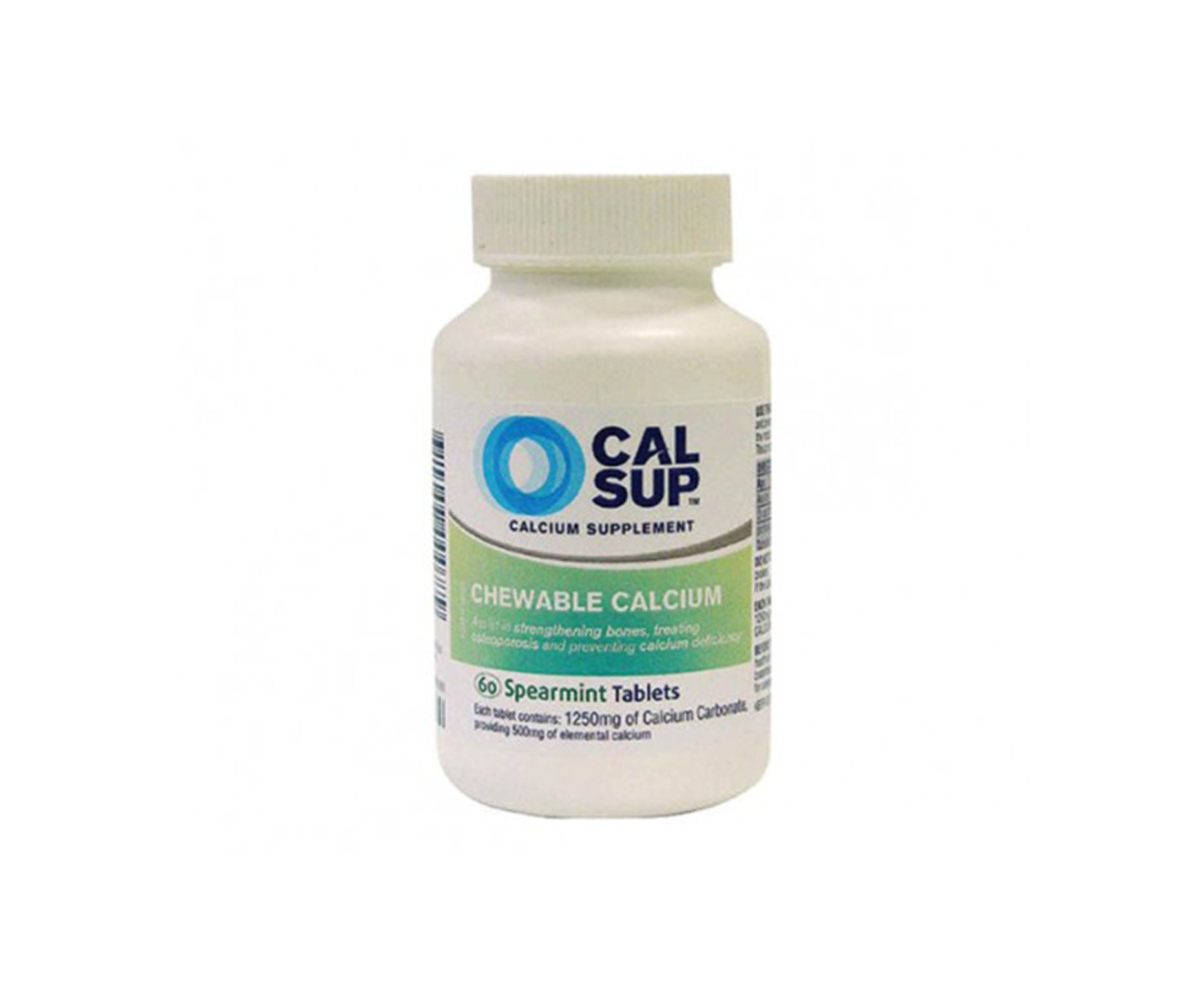 Cal Sup is a chewable calcium supplement which helps to treat osteoporosis, strenghten bones and prevent calcium deficency. It is suitable for people who have difficulty swallowing tablets and comes in a spearmint flavour. Cal sup is sugar free, gluten free, lactose free and contains no preservatives.