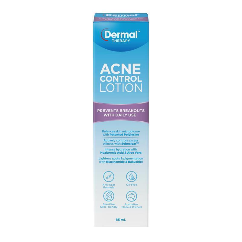 Dermal Therapy Acne Control Lotion is a daily, oil-free moisturiser formulated with patented Polylysine to effectively reduce breakouts. By balancing the skin's microbiome, reducing redness & decreasing oil production, the skin is kept free from acne-causing bacteria.
