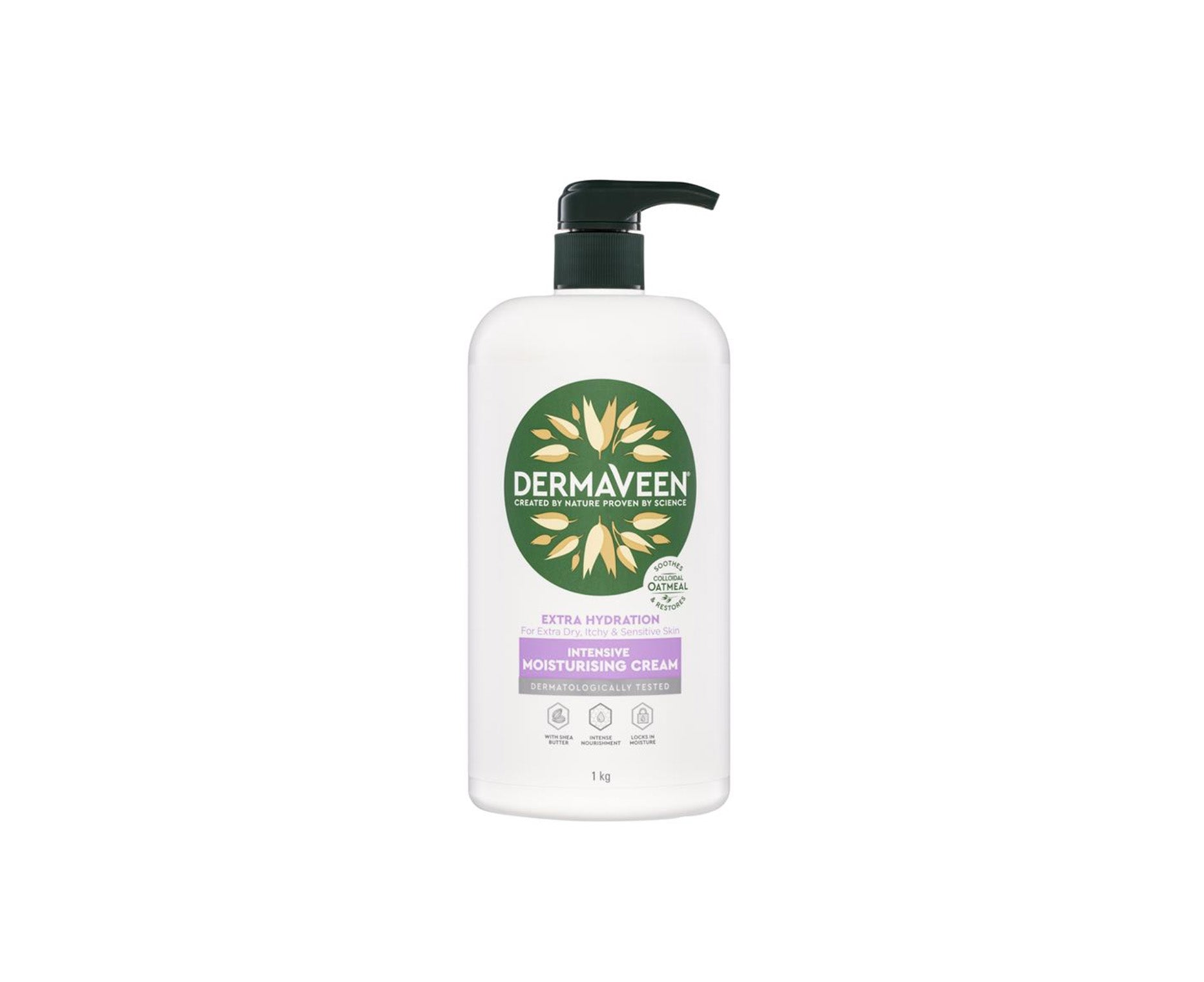 DermaVeen Intensive Extra Hydration Moisturising Cream with shea butter for extra dry, itchy & sensitive skin. Provides intense nourishment, locks in moisture and colloidal oatmeal that soothes & restores skin.