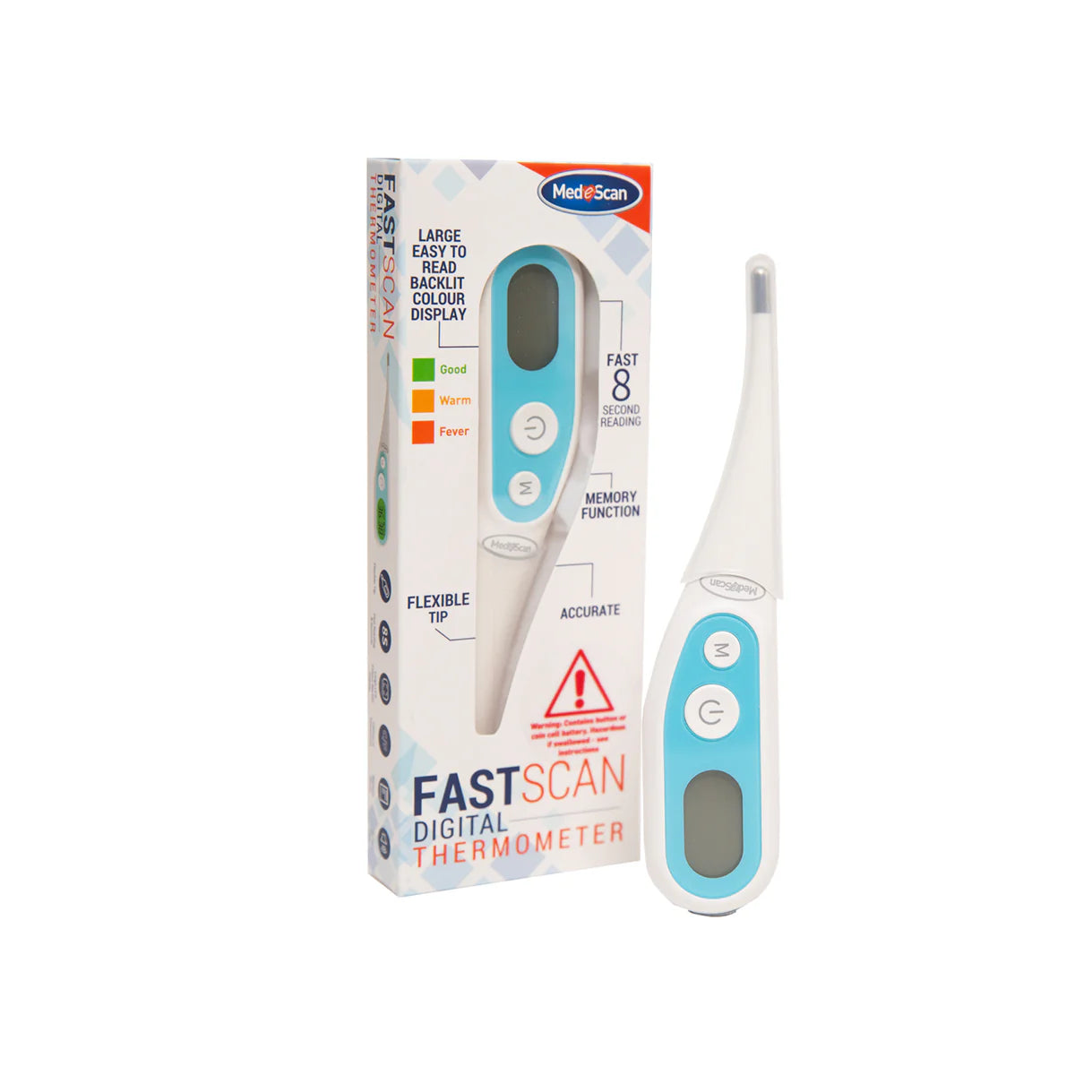 Experience the convenience and precision of the Medescan FastScan Thermometer, designed for oral, rectal, and underarm use.