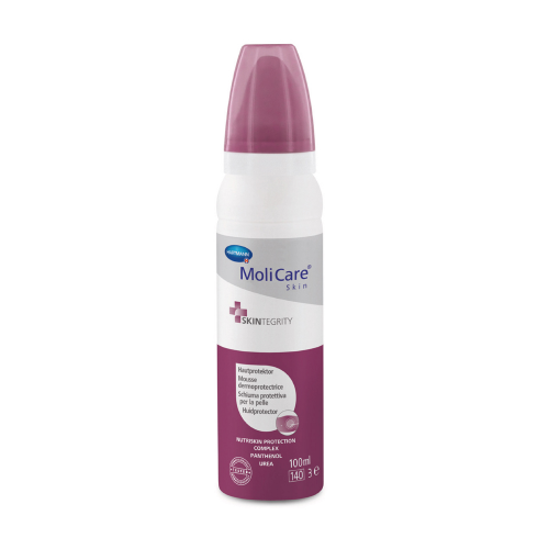 MoliCare® Skin Protection Foam is an effective barrier to protect irritated skin from the effects of incontinence by forming a transparent protective film on the skin. Zinc oxide free ensures pad absorbency is not impacted. The innovative formula is enriched with the Nutriskin Protection Complex to strengthen the skin's natural protection and regeneration function.