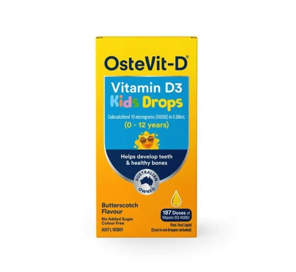 Ingredients:OsteVit-D Children's Oral Drops contain 200 IU of Vitamin D3 per 0.04 mL drop and have a pleasant butterscotch flavour.