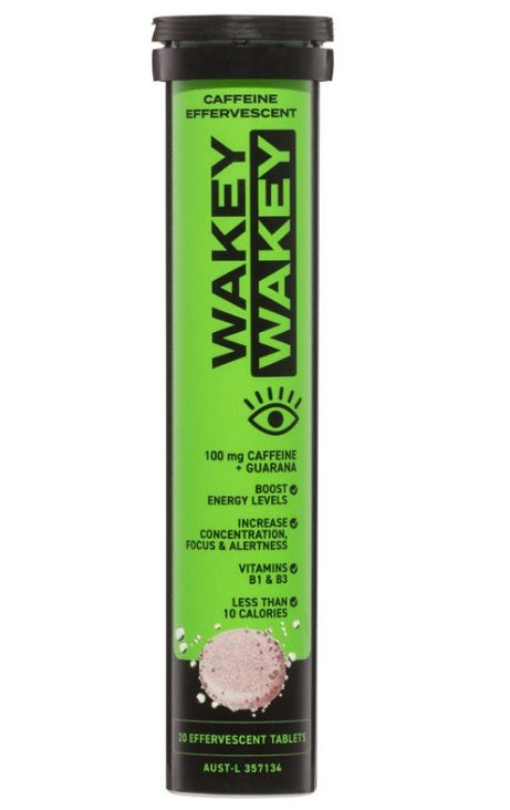 Wakey Wakey Effervescent contains 100mg Caffeine + Guarana. Boost energy levels, increase concentration, focus & alertness. Contains Vitamin B1& B3 with less than 10 calories.
